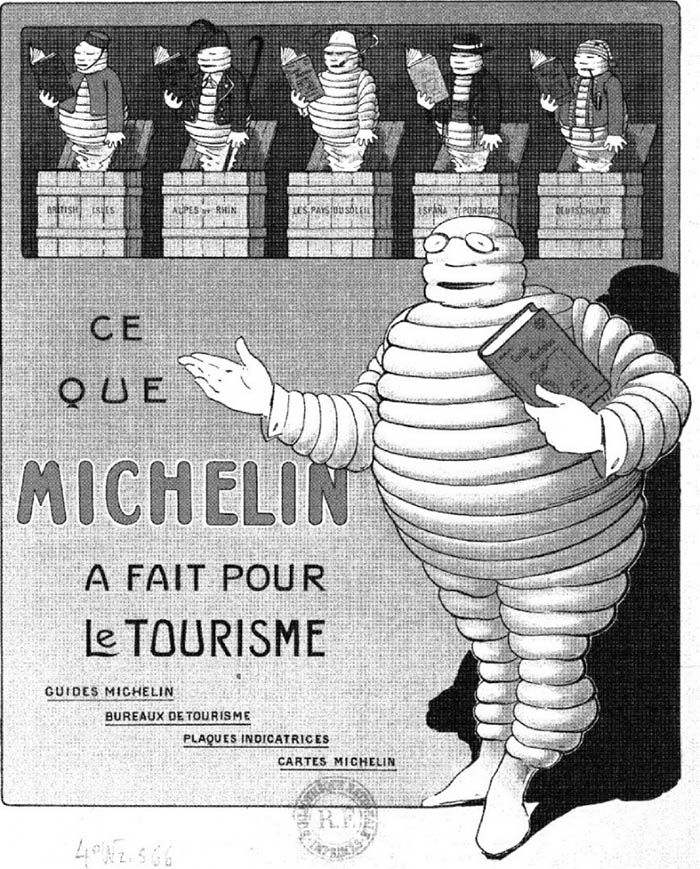 Una de las ideas que se les ocurrió para promocionar el uso del vehículo fue la de regalar junto con sus neumáticos una guía con información que podía resultar muy útil a los chóferes, cómo planos de algunas ciudades, droguerías en las que poder comprar latas de combustible -las gasolineras todavía no existían-, una lista de médicos, otra de mecánicos a los que acudir en caso de avería.